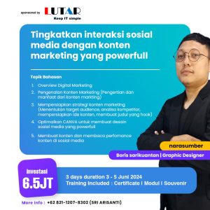 DIBUKA!!! training interaksi sosial media dengan konten marketing yang powerfull 3-5 Juni 2024 IG : Lutarid