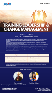 Hi sahabat lutar.. Akan dibuka kelas reguler untuk materi leadership & change management di bulan November ini, yuk daftar segera, sebelum kehabisan seat nya… see